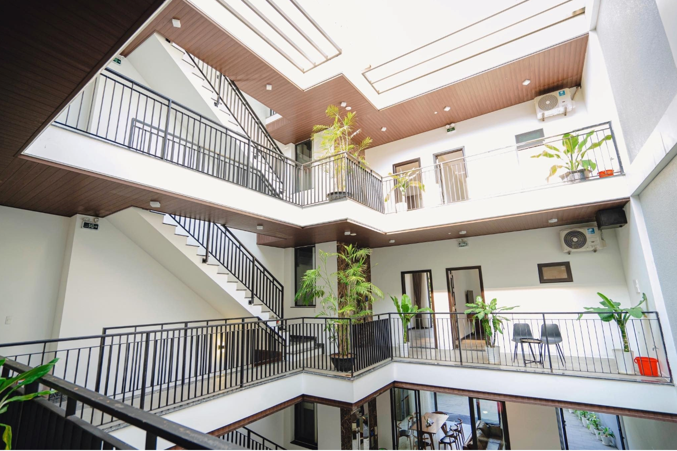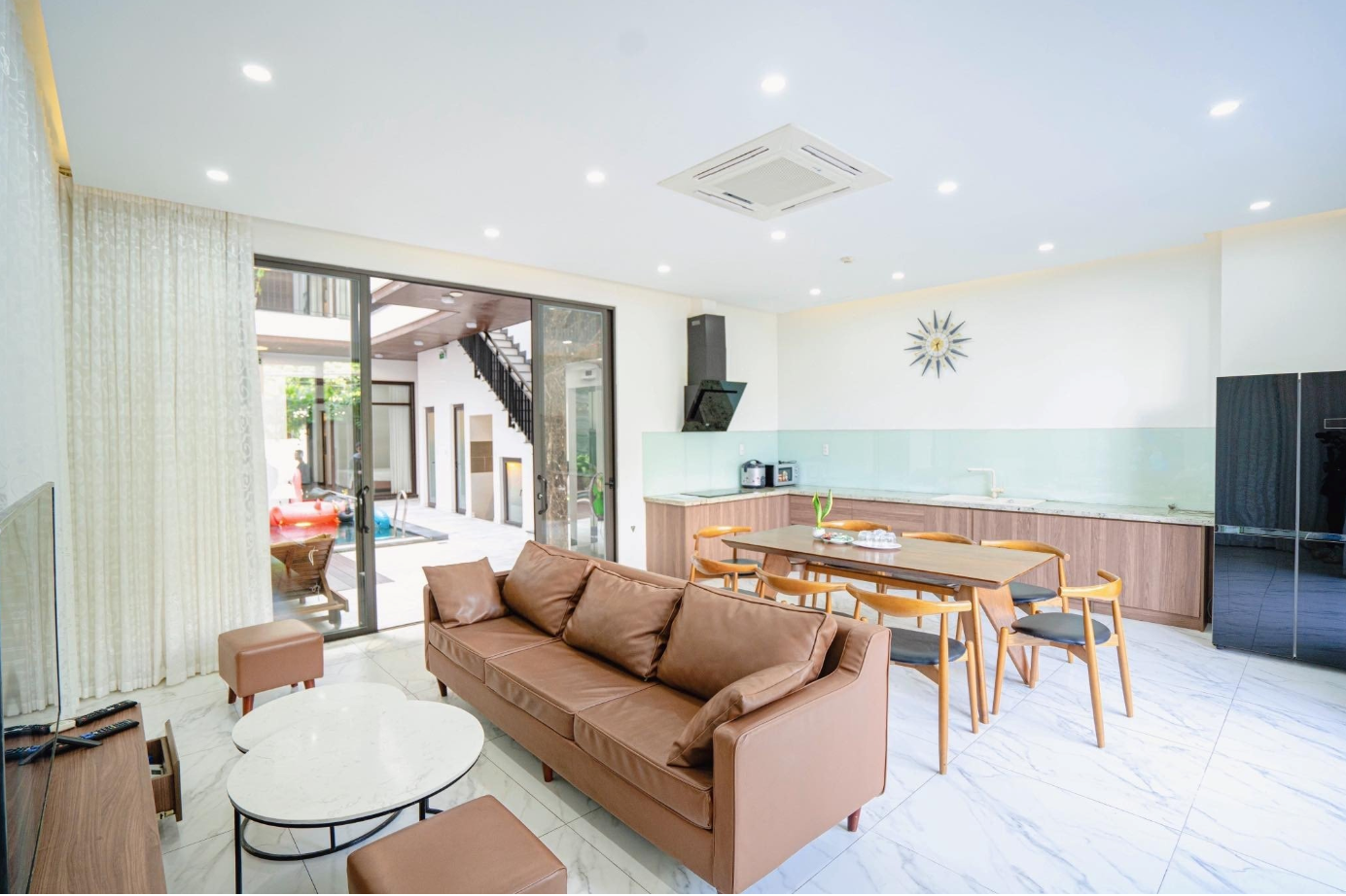 👉 최대 18명까지 투숙 가능한 9개의 룸과 주방과 9개의 침대. 넓은거실,