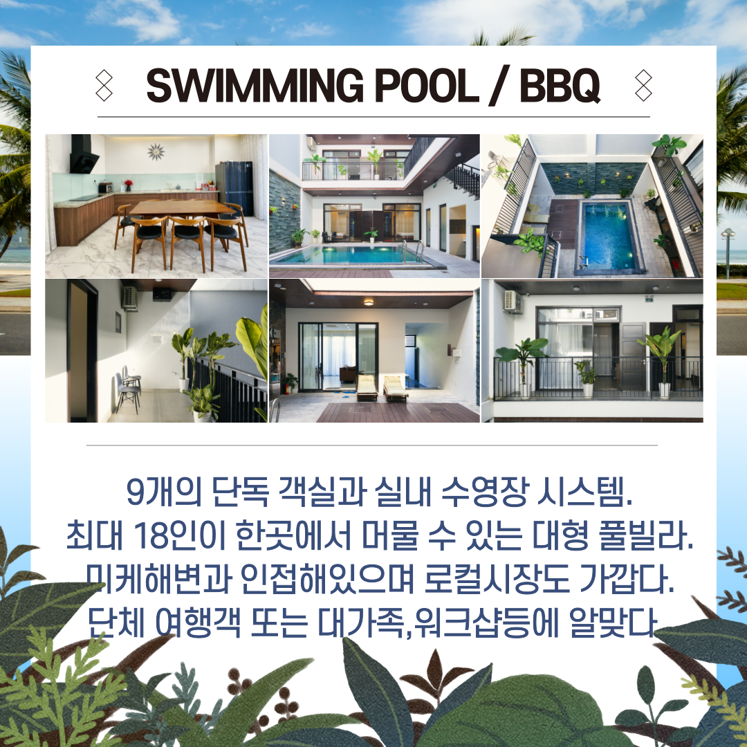 최대 18인이 한곳에서 머물 수 있는 대형 풀빌라입니다.