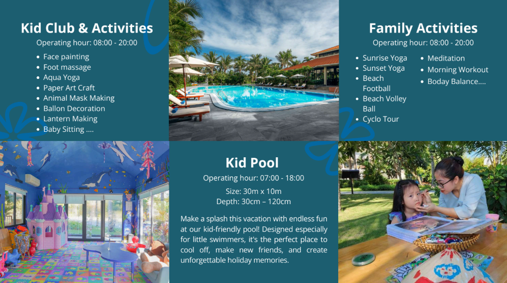 - 키즈 클럽 무료 이용 및 다양한 액티비티 제공 (일부 유료)