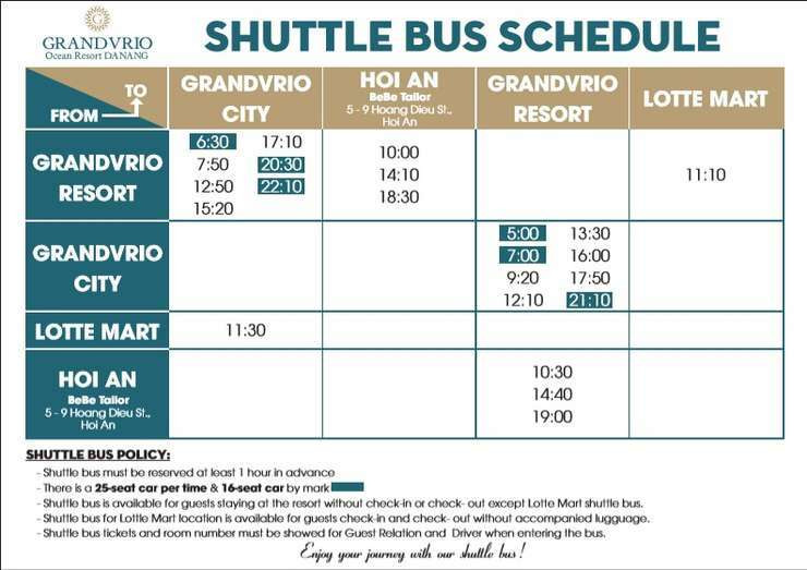 - 다낭 시내 ↔ 호이안 고도시 무료 셔틀버스 운행 (리조트의 스케줄에 따라 운영)