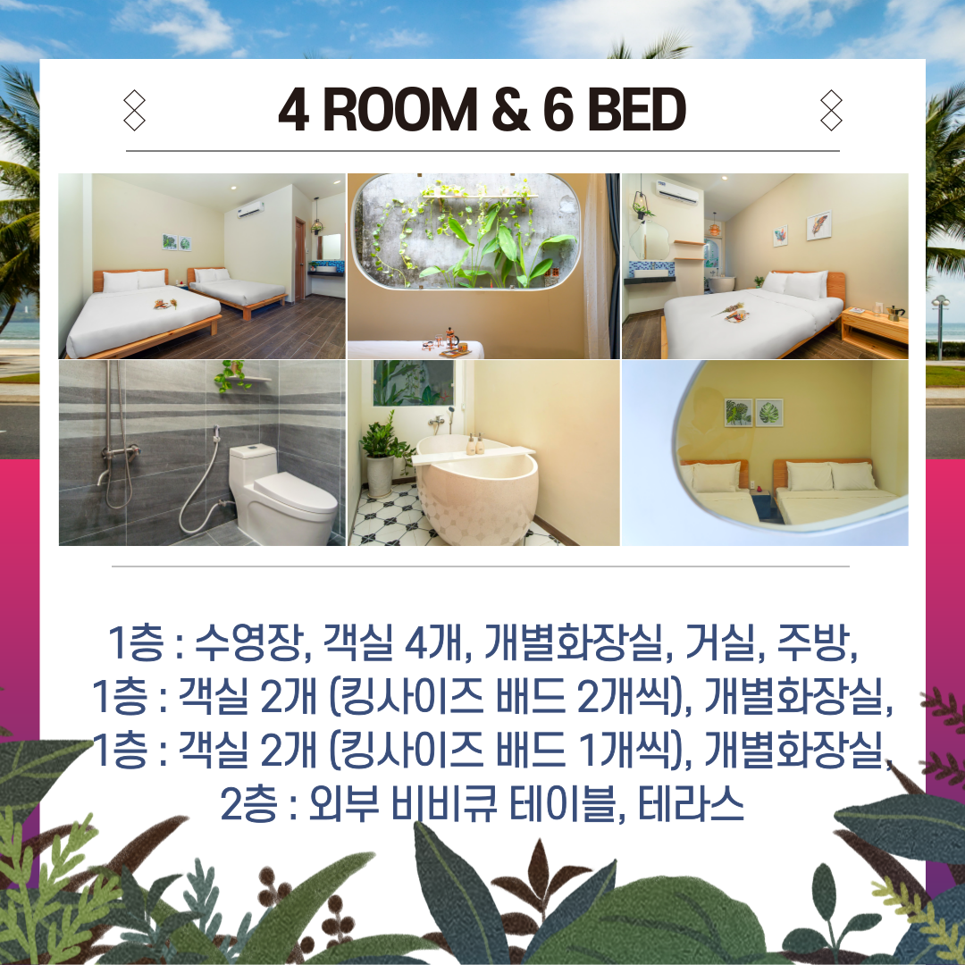 총 4개의 객실과 6개의 베드로 구성된 프라이빗 풀빌라 입니다.