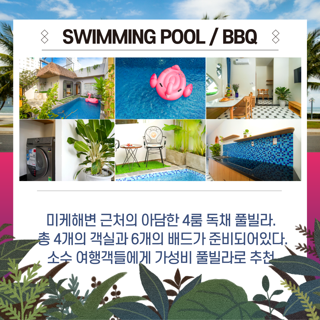 다낭공항에서 약 20분정도 거리에 위치해 있고 개별 수영장과 외부에서 BBQ 파티가 가능합니다.