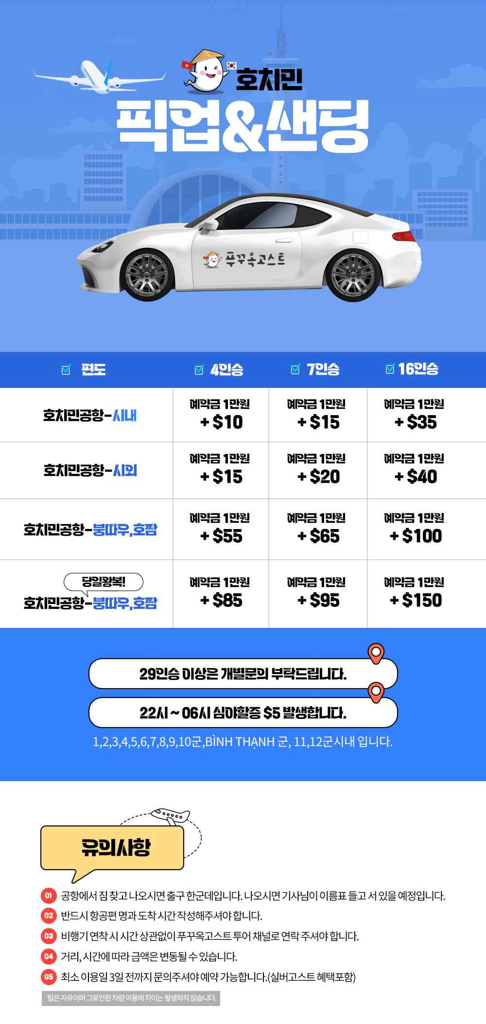 🔖 호치민 공항픽업 호짬 , 붕따우 픽업샌딩 ❓