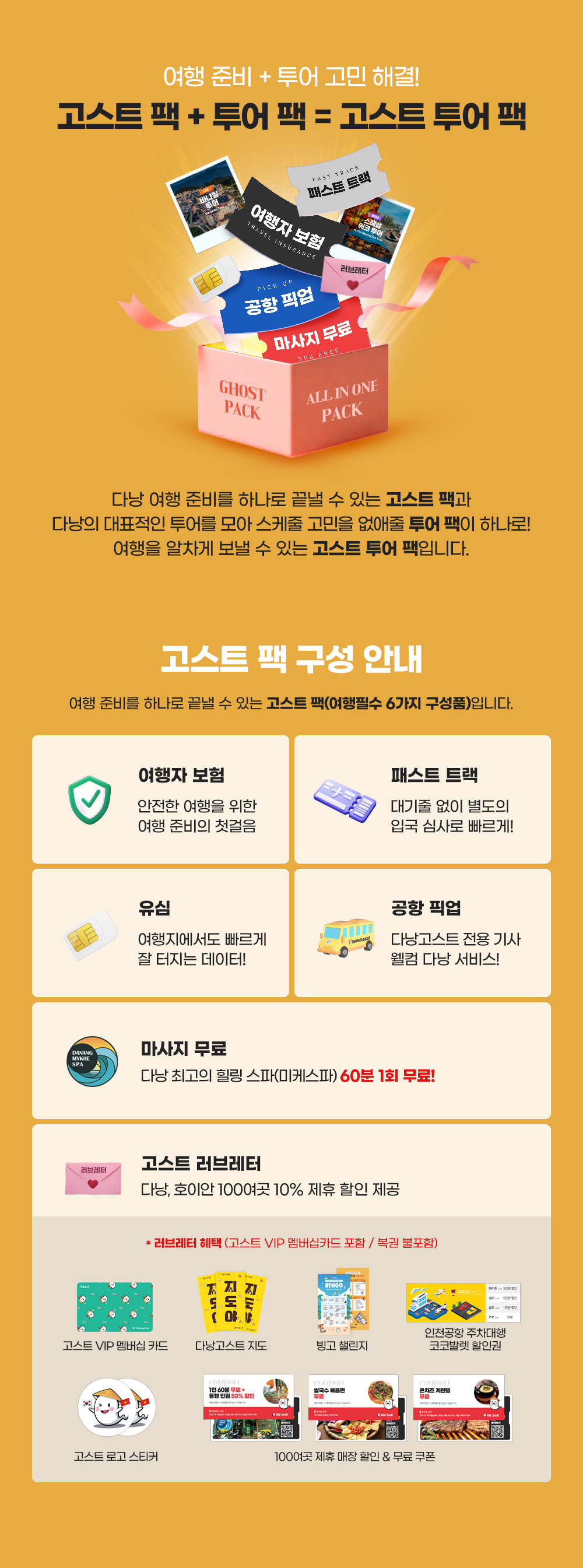 투어 스케줄+여행자보험+공항패스트트랙+공항픽업차량+유심+마사지무료권+혜택 종합 선물세트인 고스트 러브레터까지!!!