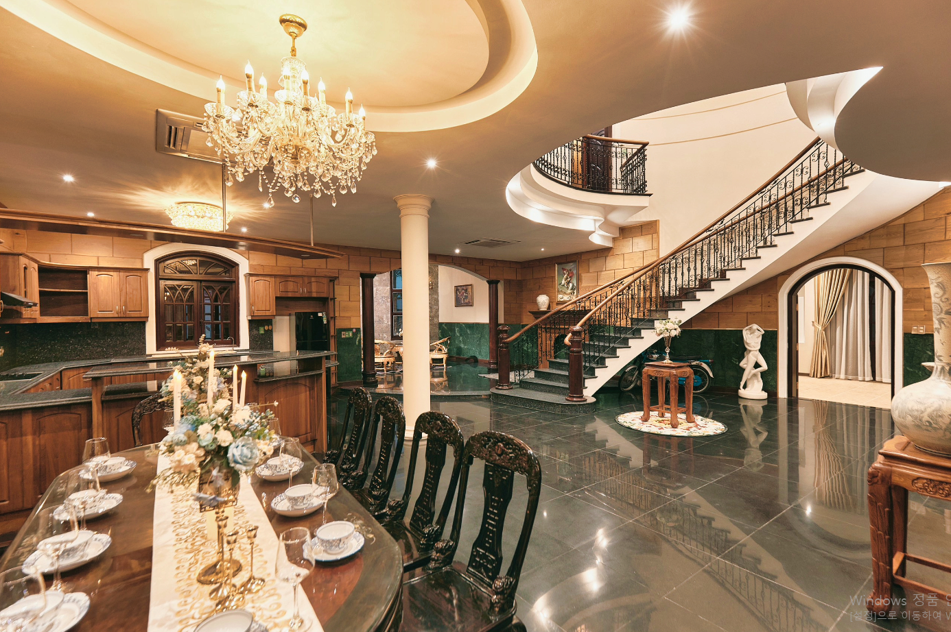 👉 최대 16명까지 투숙 가능한 7개의 룸과 주방과 10개의 침대, 고급스러운 인테리어,