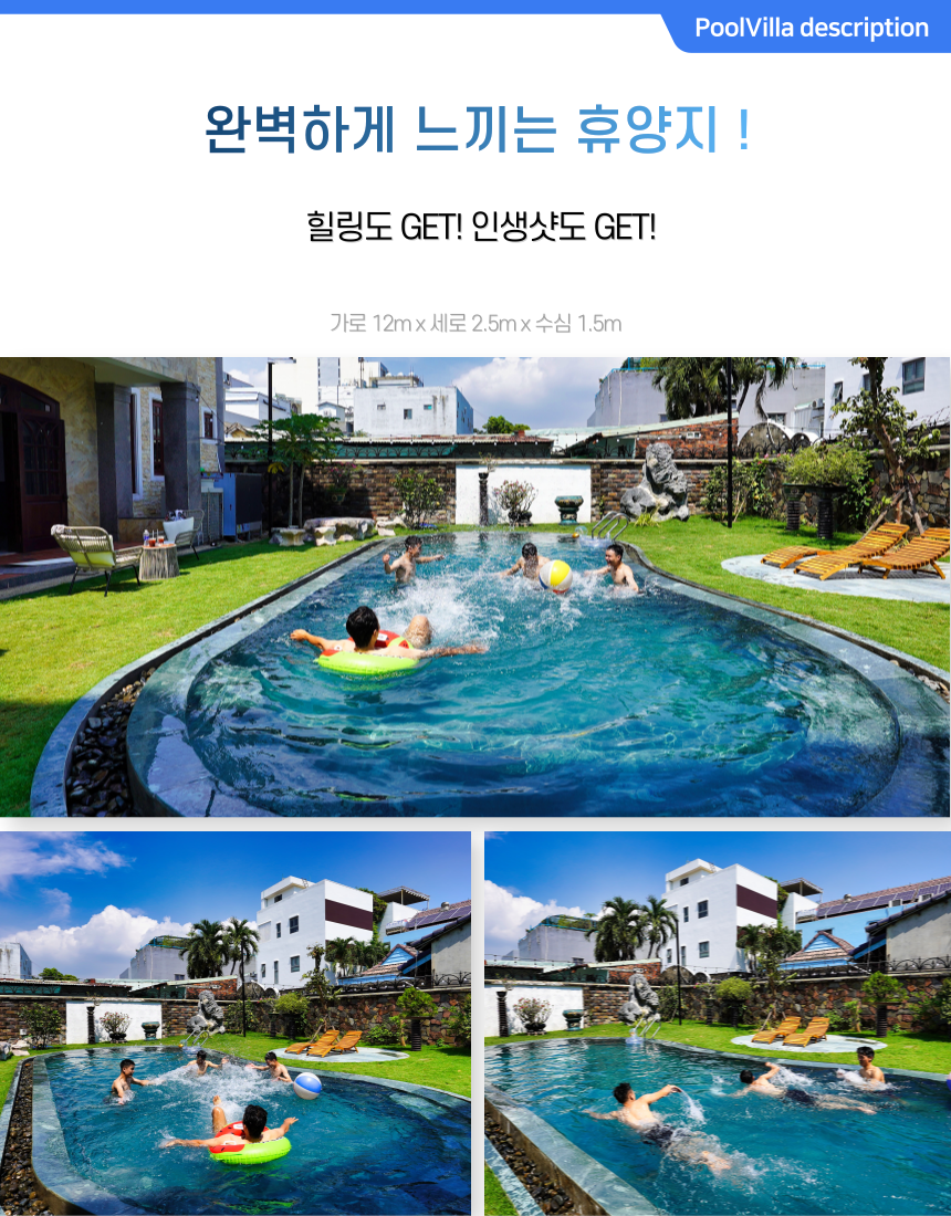 휴양과 레저를 위한 최적의 공간으로 수영을 즐기는 동시에친구나 가족과 함께편안한 시간을 보낼 수 있습니다.