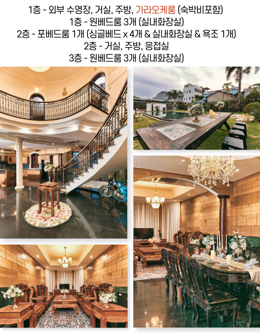 1층 - 외부 수영장 / 거실 / 주방 / 화장실 / 카라오케룸