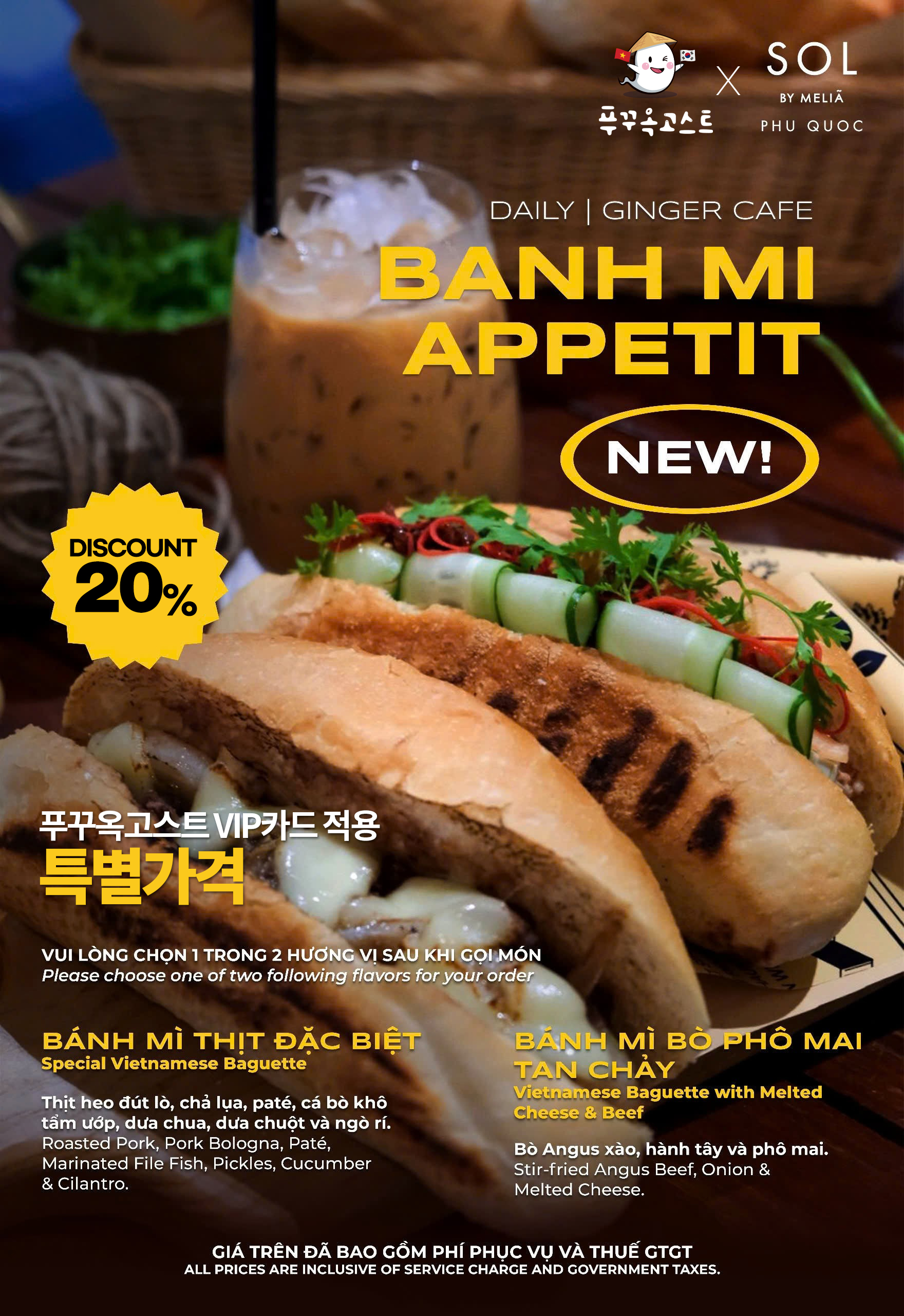 베트남 커피 및 다양한 음료, 알콜 및 시그니처 칵테일 메뉴