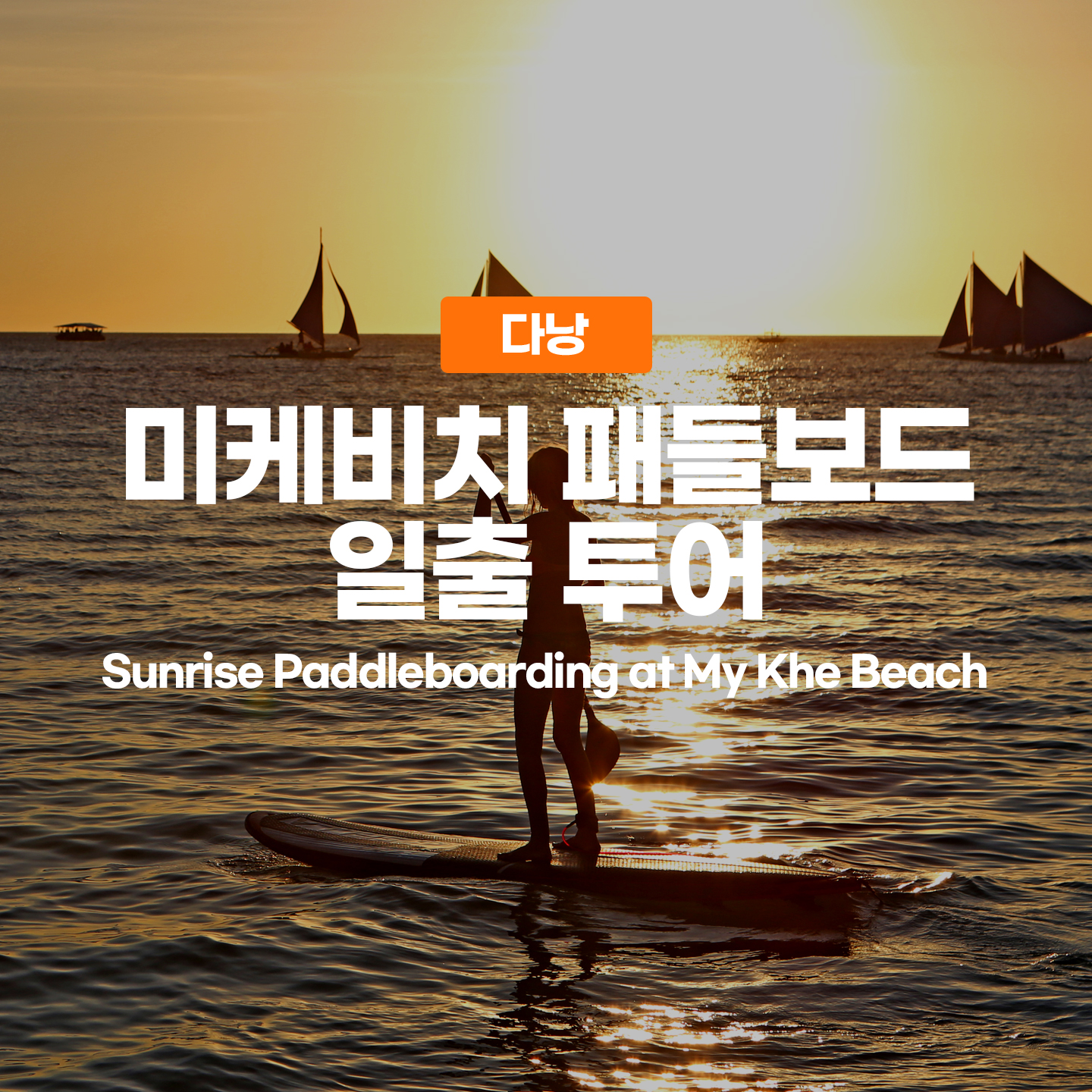 세계적으로 유명한 미케비치의 일출을 보며 패들보드를 타고 추억을 만들어 보세요!