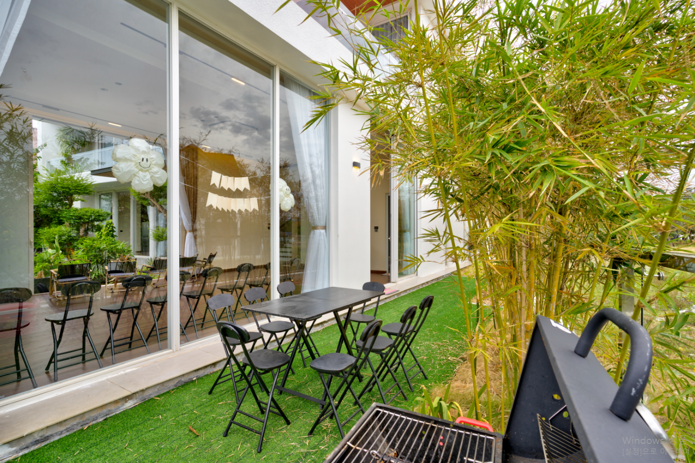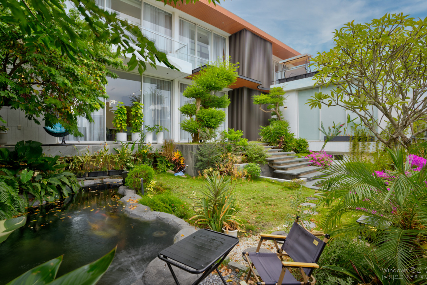 최고의 휴식을 취할 수 있습니다. 전용 수영장과 울창한 정원을 즐기거나