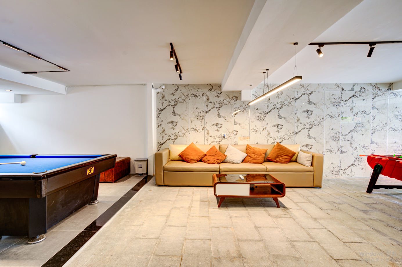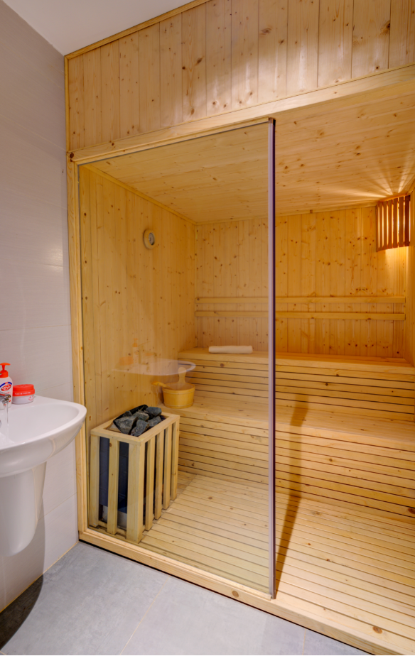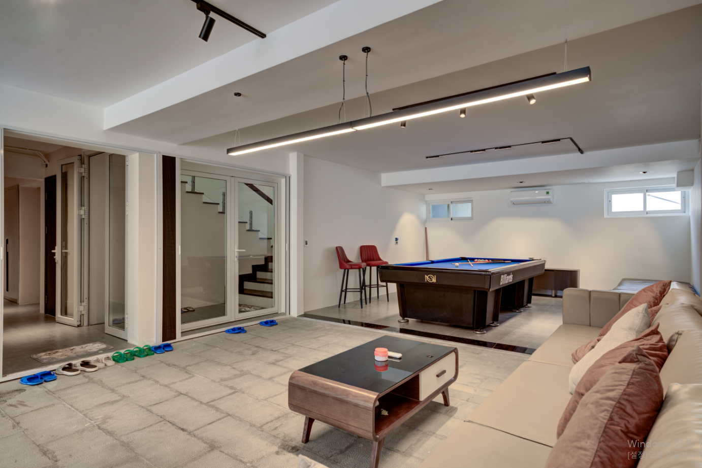 빌라에는 전용 사우나와 당구장이 있는 지하 엔터테인먼트 공간도 마련되어 있습니다.