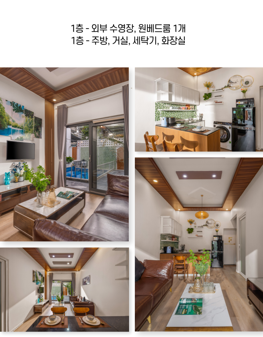1층 - 외부 수영장 / 원베드룸 1개 1층 - 주방 / 거실 / 세탁기 / 화장실 👉 최대 2명까지 투숙 가능한 1개의 룸  👉 체크인 -14:30 / 체크아웃 - 11:30