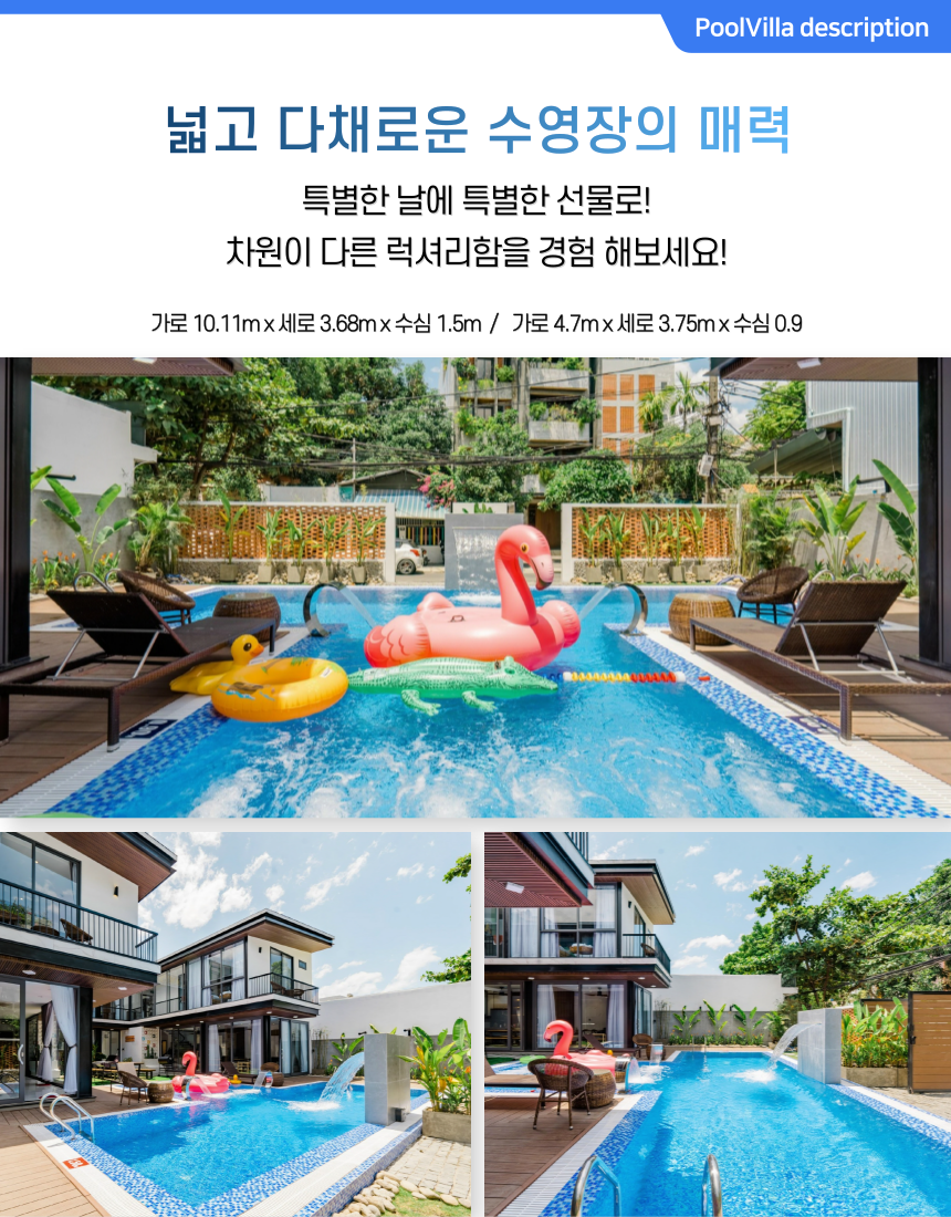 • 10개의 객실, 10개의 침대를 갖추고 있는 대형 풀빌라 입니다.
