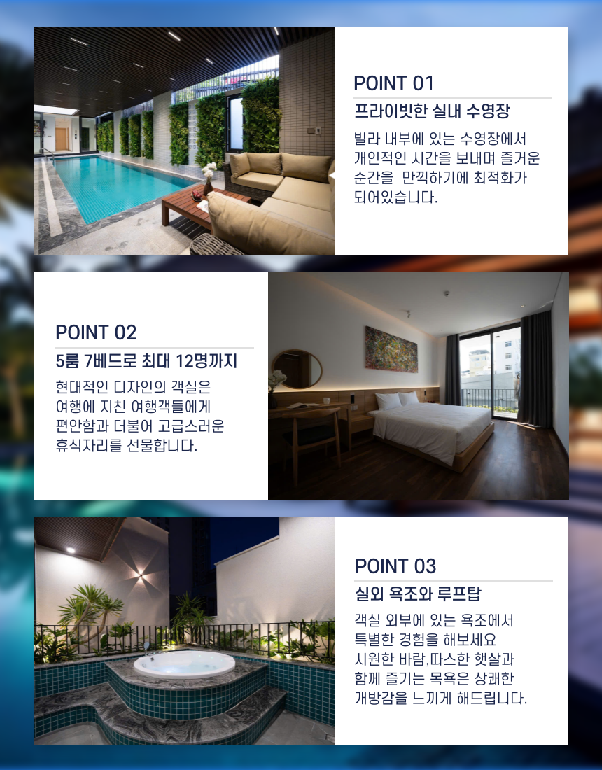 • 5개의 객실로 구성된 프라이빗 풀빌라 입니다.