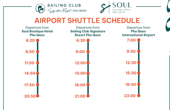 - 세일링 클럽 시그니처 리조트 <-> 세일링 클럽 비치, 소울 부티크 호텔 무료 왕복 버기 서비스