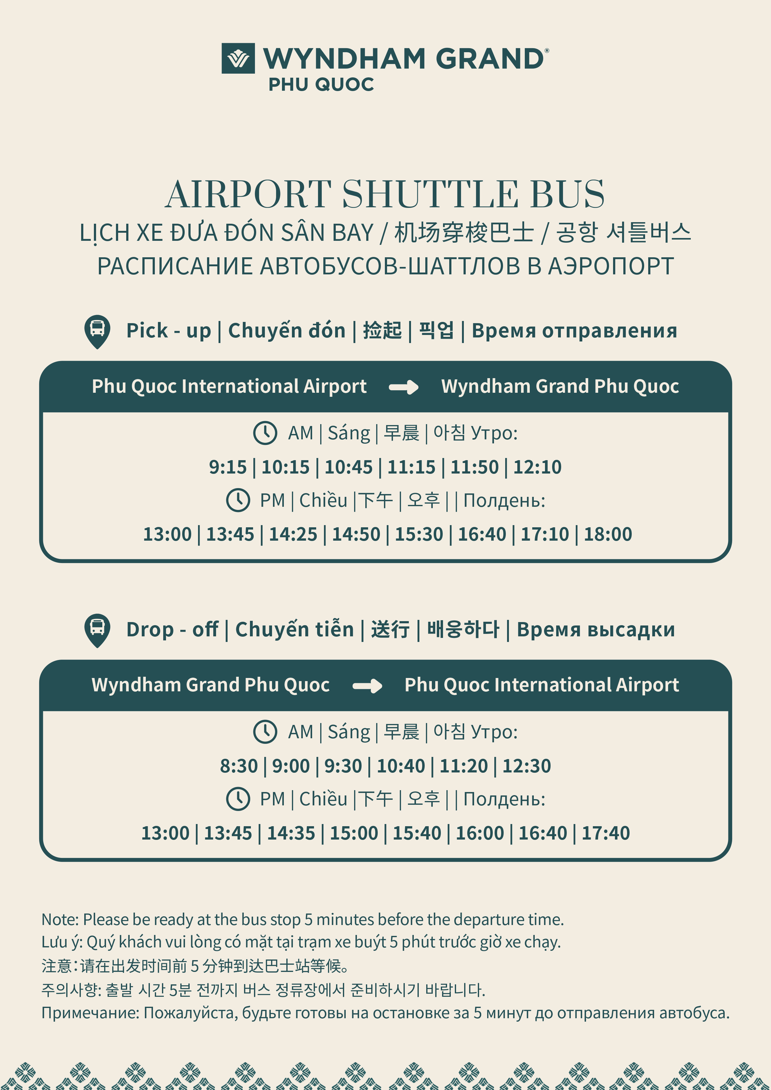픽업 시간 10분 전까지 도착 필수 (셔틀을 놓치시는 경우 개별 이동 해주셔야 합니다)