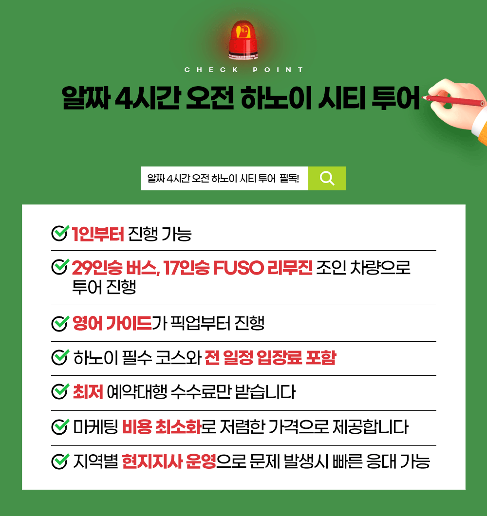 (투어시간: 08:00 – 13:30, 총 4시간 시티투어)
