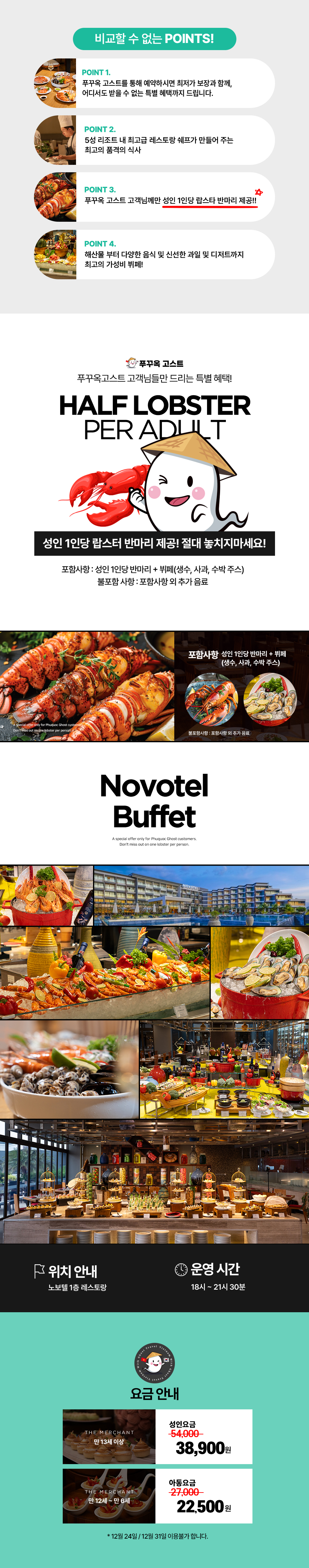 랍스터 제공: 성인 1인당 랍스터 반 마리가 서빙되며, 추가 주문 시 비용이 발생할 수 있습니다.