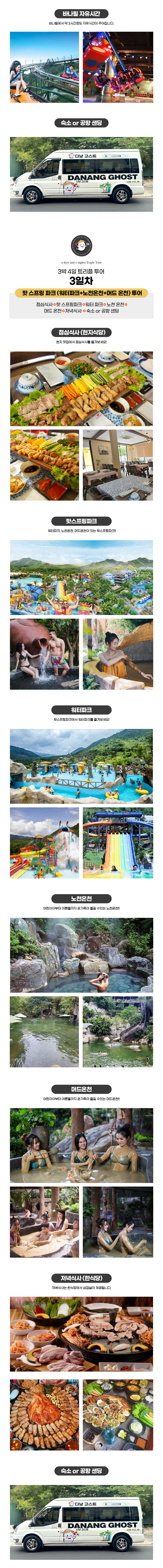 숙소 픽업 → 점심식사(현지식 맛집) → 핫 스프링파크 → 워터파크 → 노천 온천→ 머드 온천 → 저녁식사(삼겹살 맛집) → 숙소 or 공항샌딩