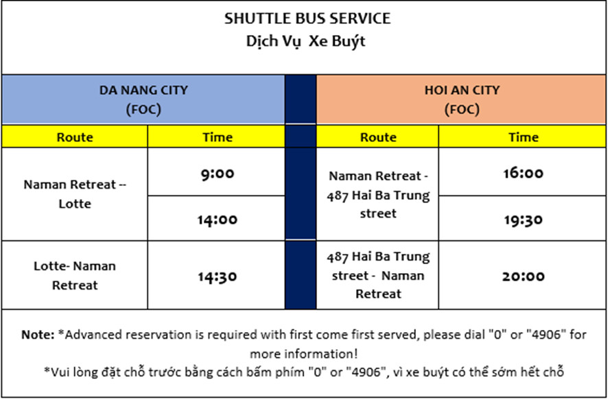 - 호텔-시내 간 무료 셔틀 버스 (다낭 시내 및 호이안 시내)