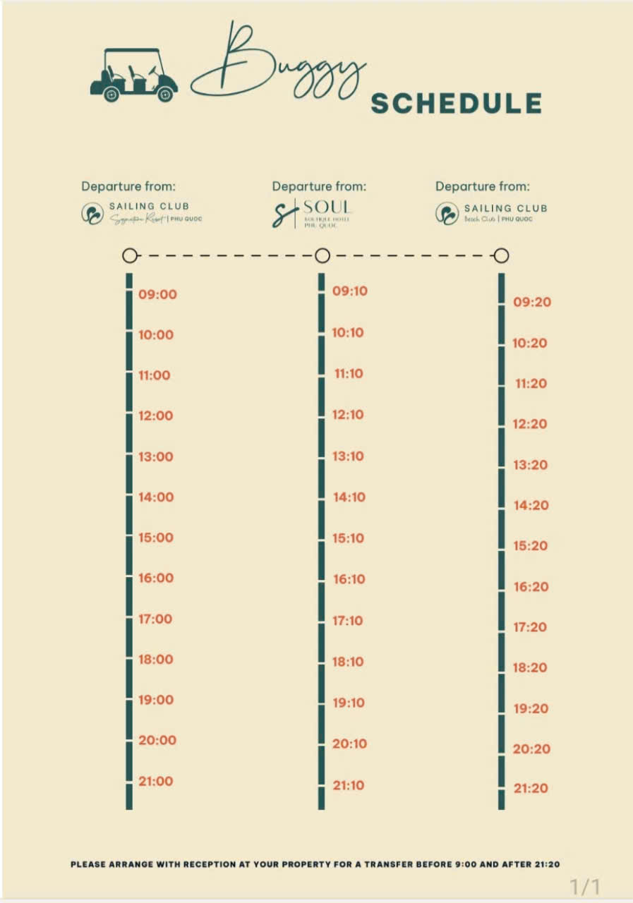 ◾ 세일링 클럽 시그니처 리조트 <-> 세일링 클럽 비치, 소울 부티크 호텔 무료 왕복 버기 서비스