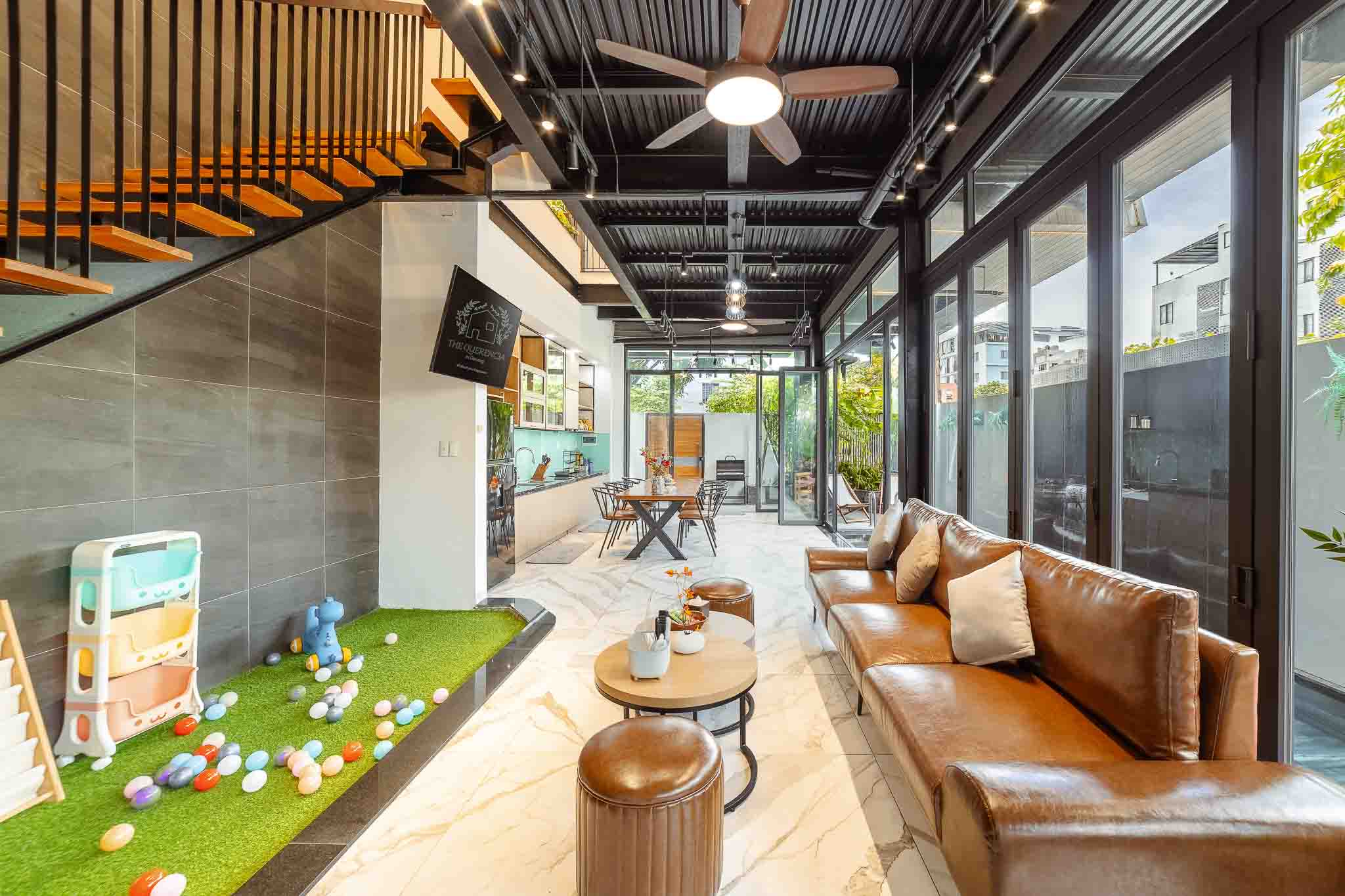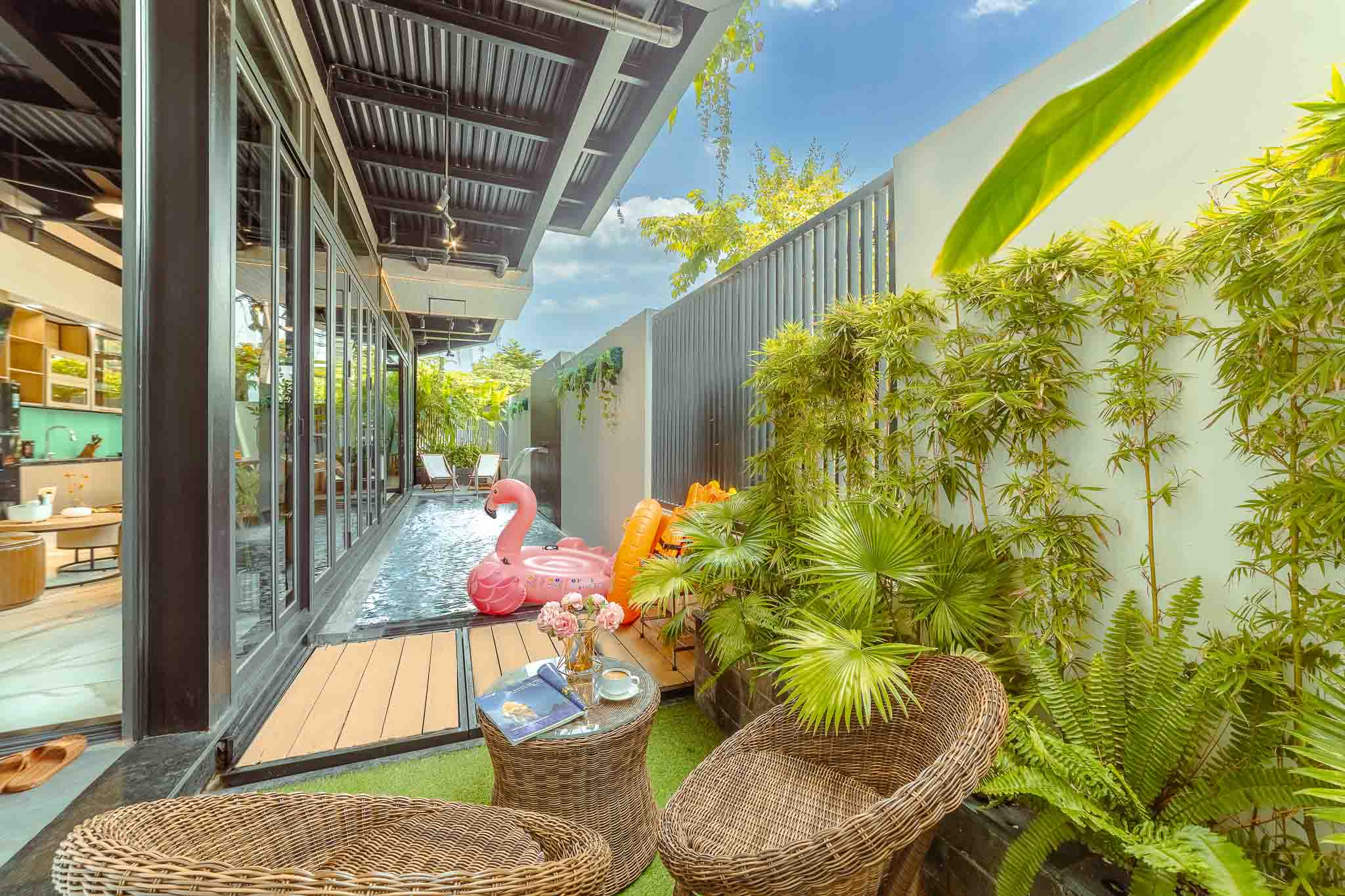 2층 구조의 프라이빗 풀빌라로, 탁 트인 통창과 모던한 인테리어가 돋보입니다.