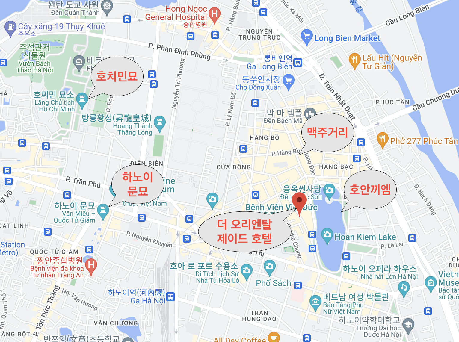 더 오리엔탈 제이드 호텔에서 하노이 국제 공항까지는 차로 약 45분 정도면 갈 수가 있으며 하노이의 대표적인 관광지인 호치민 박물관까지는