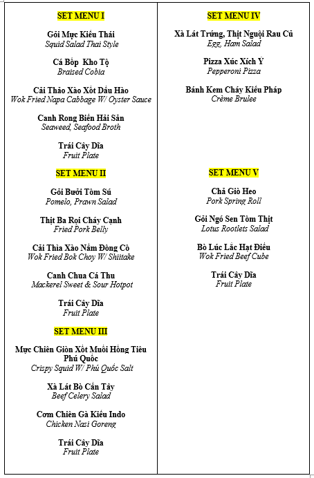◾ 메뉴: 세트 메뉴 (투숙객 전원 제공, 객실당 세트 메뉴는 한 개만 선택 가능)
