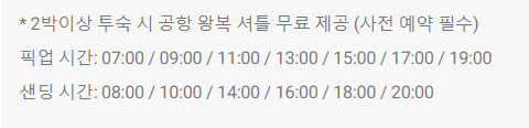 ◾2박이상 투숙 시 공항 ↔ 호텔 왕복 셔틀 무료 제공 (체크인 7일 전까지 사전 예약 필수)